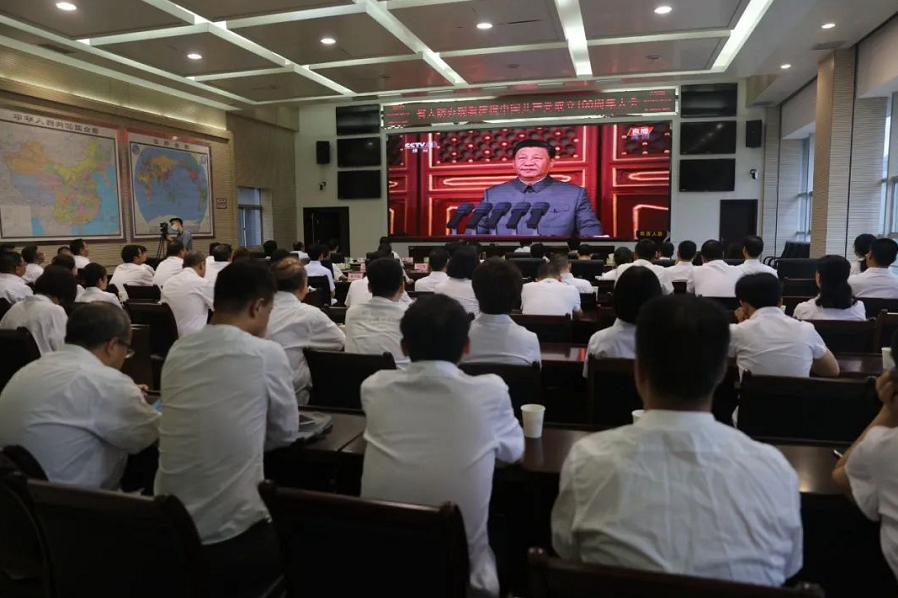7月1日上午8时,庆祝中国共产党成立100周年大会在北京天安门广场隆重举行,省人防办组织全体党员干部职工集中收看了大会直播盛况,认真聆听中共中央总书记、国家主席、中央军委主席习近平重要讲话,共同庆祝中国共产党百年华诞。省委党史学习教育领导小组第九巡回指导组全体人员参加集中观看活动。