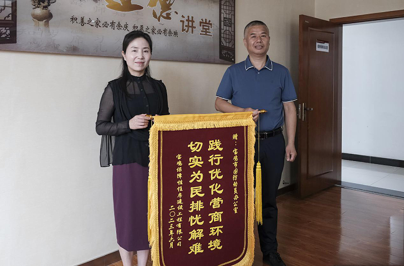 7月5日上午,宝鸡保障性住房建设工程有限公司一行来到宝鸡市国防动员办公室,将一面“切实为民排忧解难 践行优化营商环境”的锦旗,送到市国动办,表达对市国动办开展优化营商环境活动中对建设单位工作大力支持的诚挚谢意。