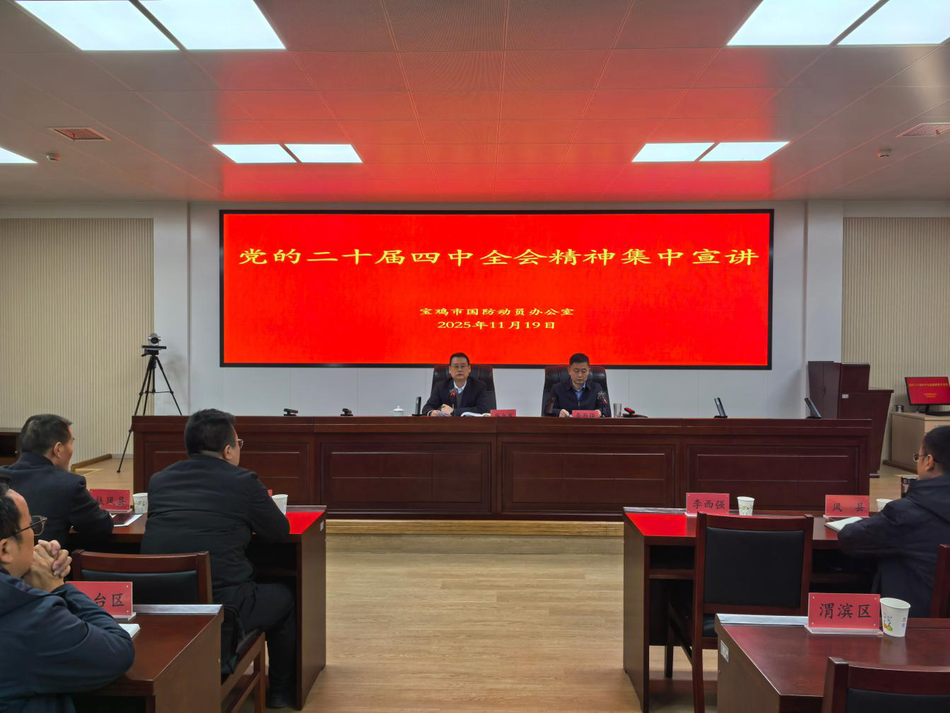11月19日,宝鸡市国动办党组书记、主任唐立军以“深入学习贯彻党的二十届四中全会精神 加快推进宝鸡国防动员高质量发展”为主题,为全市国防动员系统党员干部进行宣讲,市国动办党组成员,县级领导,各县区国动办主任,机关和直属单位全体人员参加。